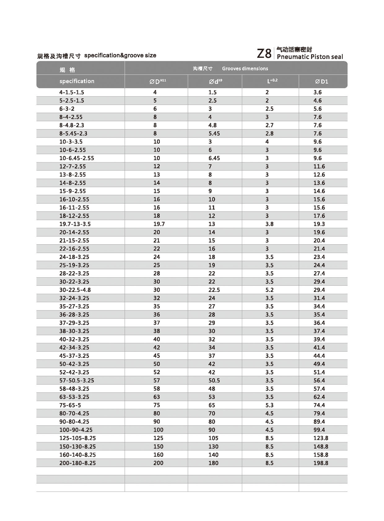 Z8是专门为短行程的气缸而设计,安装沟槽小,密封性能好,摩擦力阻力小。
